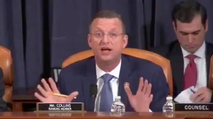 GOP Rep. Doug Collins slammed the Democrats’ never-ending impeachment fantasy Monday morning; blasting Intel Chair Adam Schiff for skipping the hearings while opting to “hide behind his staff.”