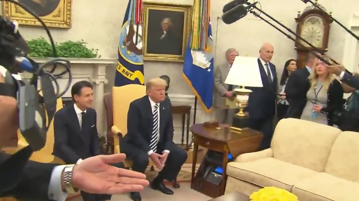 The President was speaking alongside Italian Prime Minister Giuseppe Conte when the briefing came to its scheduled conclusion.