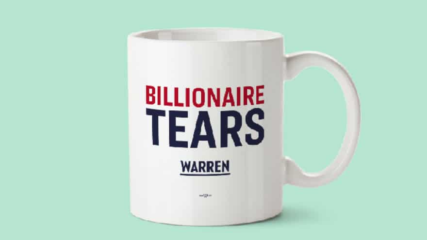 “Presidential candidate Elizabeth Warren isn’t backing down from her fight against billionaires — in fact, the Democratic senator from Massachusetts is now selling $25 ‘billionaire tears’ mugs on her campaign website,” reports Yahoo News.