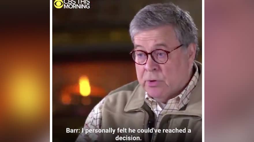 “I personally feel he could’ve reached a decision… He could’ve reached a conclusion. The opinion says that you can’t indict a President while he’s in office. But he could have reached a decision as to whether it was criminal activity,” said Barr.