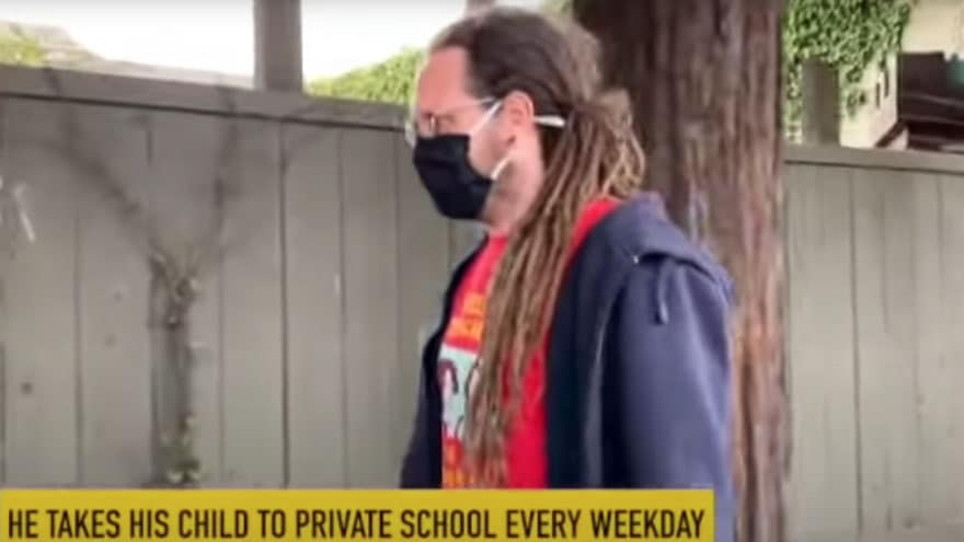 A group known as Guerilla Momz is calling Berkeley Federation of Teachers president Matt Meyer a hypocrite after spotting him dropping his two year old daughter off for in-person instruction at a private pre-school.