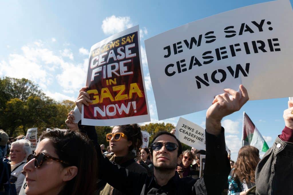 “We’re all here to demand an end to the genocide of the Palestinian people, aided and abetted by the U.S. government,” the group wrote on X, formally Twitter.