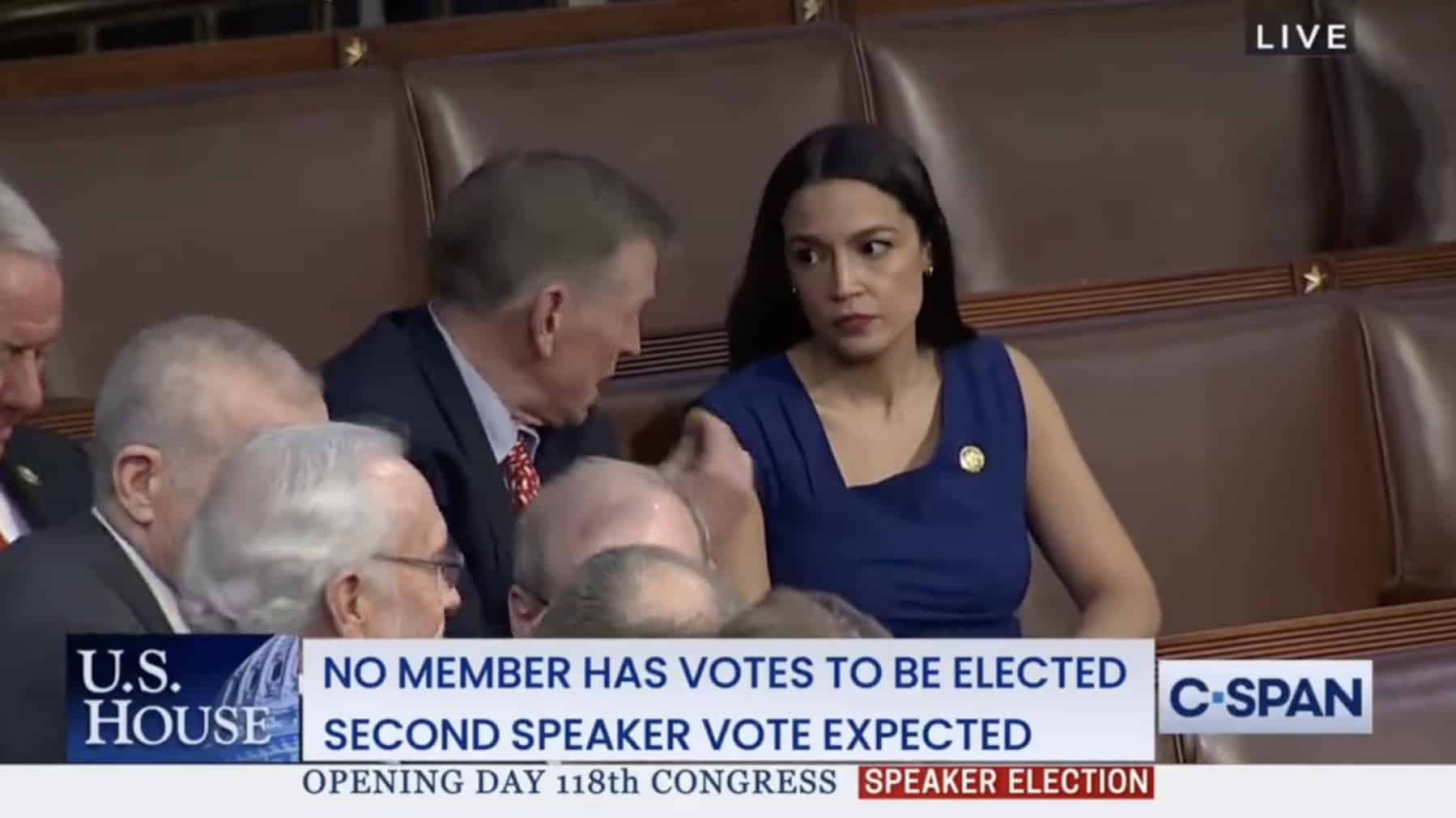 During Tuesday’s House speakership vote, eagle-eyed viewers following along on C-SPAN noticed an unusual conversation happening on the House floor between Reps. Alexandria Ocasio-Cortez (D-NY) and Paul Gosar (R-AZ).