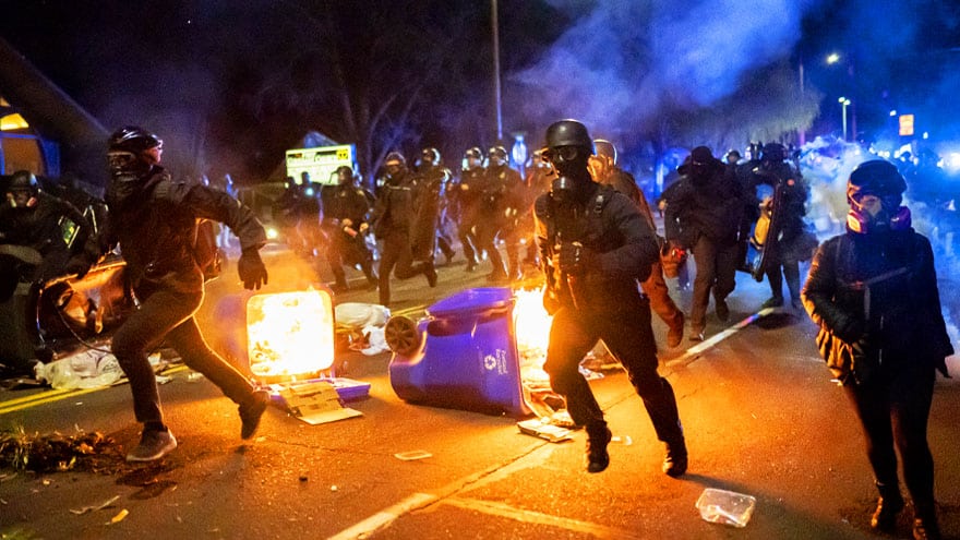 “Authorities fired tear gas, and flash-bang grenades into the crowd after warning them that they were in violation of curfew. Some rioters retaliated by throwing smoke canisters back toward law enforcement, while others launched fireworks at the police lines, according to reports,” adds Fox.