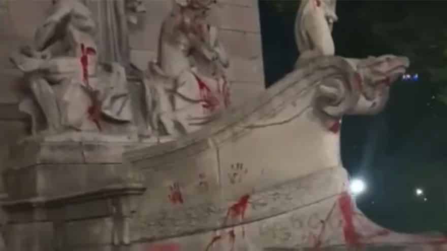 “A handful of protesters climbed the monument, which sits at the entrance of Central Park, and waved flags, video posted on Twitter shows. Some of the paint was splattered to resemble blood,” adds the newspaper. “Armed with Black Lives Matter banners, the group marched from Christopher Street up Eighth Avenue — and vandalized a bus with black spray paint and also defaced the outside of a restaurant, police told CBS New York.”