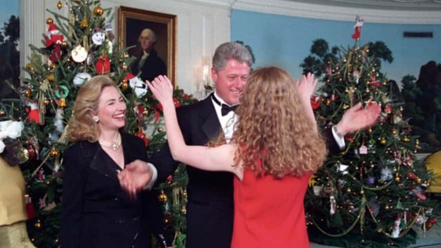 “Merry Christmas to everyone celebrating today!” posted Clinton on social media; posing with former President Bill Clinton and their daughter Chelsea.