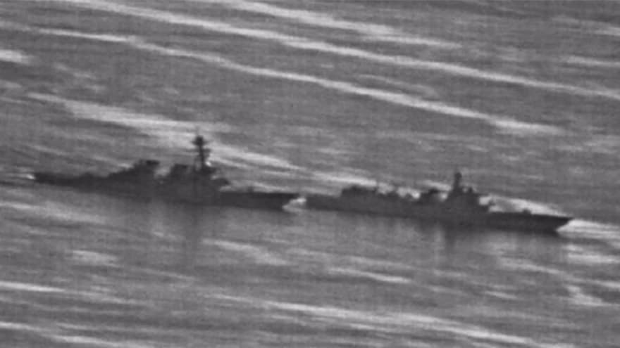 A “dangerous” Chinese destroyer came within feet of a US warship in the South China Sea this week; with stunning new photos showing how close the two vessels came to a devastating collision.