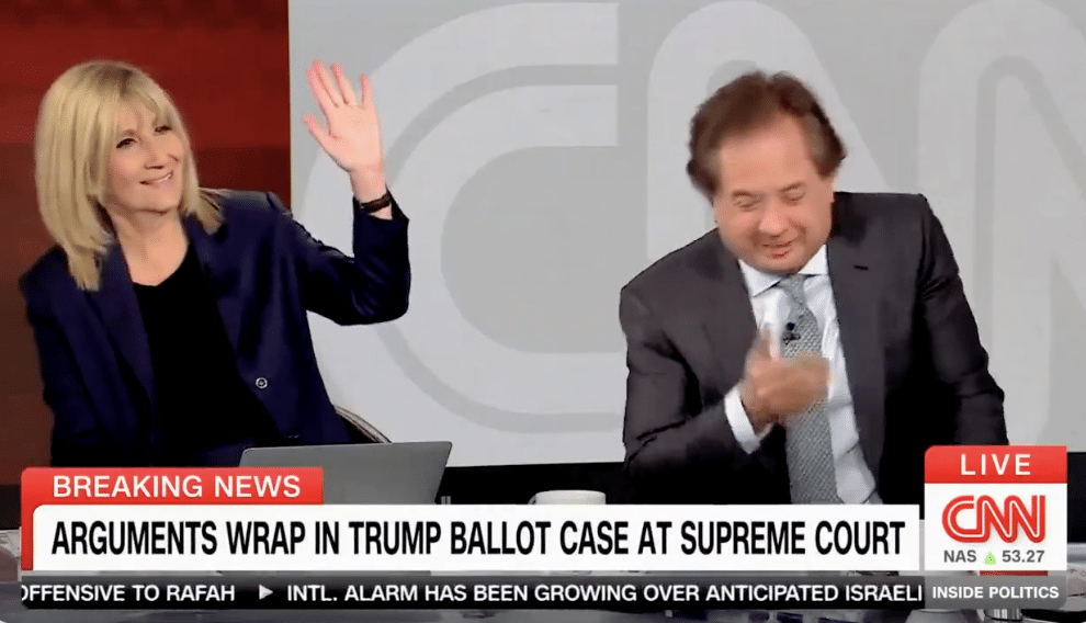 A panel of CNN talking heads erupted into a laughing fit on Thursday after cutting away from former President Trump’s remarks on the Supreme Court’s Colorado ballot hearing.