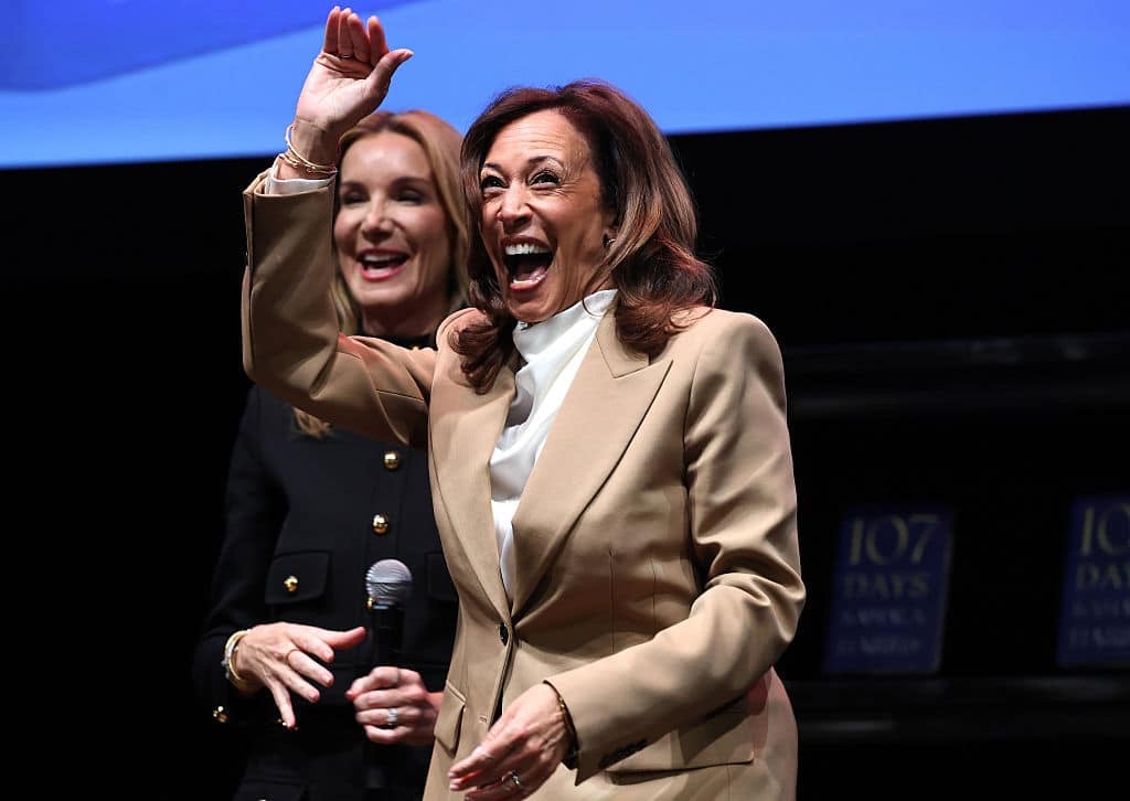 The women who lined up outside DC’s Warner Theatre to hear Harris speak last week were a “collage of brat nostalgia and MSNBC #Resistance [folk, wearing] the blazer-jeans-Converse combo,” buying campaign buttons that read, “No Kings in America” and “Anti Trump Grandmas Club,” according to the Washington Post.