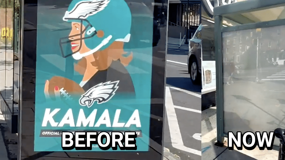 The response online came after images of several posters in Philly surfaced showing Harris wearing an Eagle’s helmet, black jersey, and holding a football. The fake poster read, “Kamala. The official candidate of the Philadelphia Eagles,” CBS News reported.