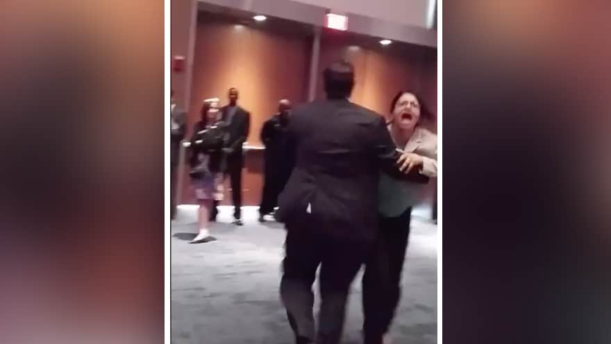 “Video of the August 2016 incident, which has gone viral since resurfacing over the weekend, shows the current congresswoman shouting as then-candidate Trump delivered a speech before business leaders. While being escorted out of the room, she continued to jump and yell at those in attendance,” adds Fox.