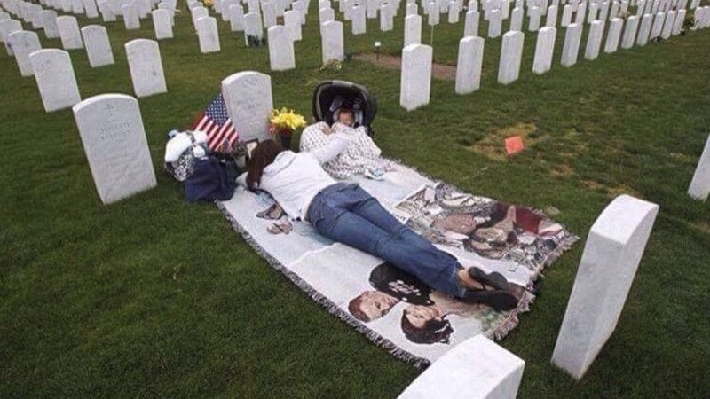 The Commander-in-Chief shared the image on social media, first published by another user and depicting a woman grieving by a fallen soldier’s grave; the caption reading “THIS IS WHY WE STAND.”