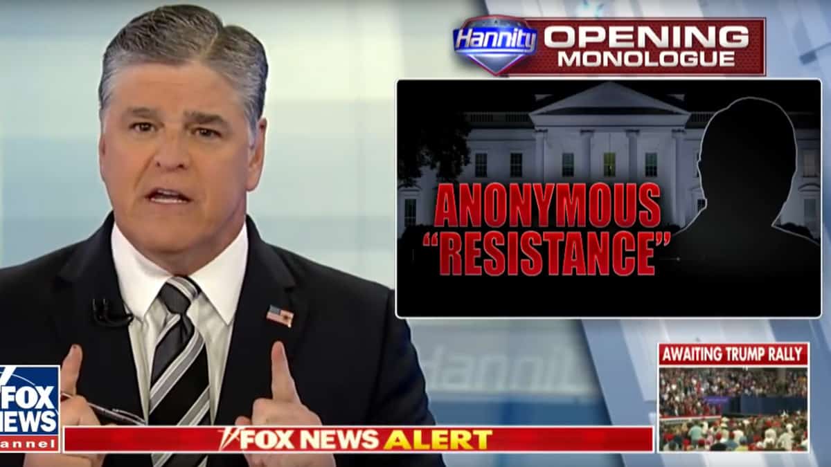 “An anonymous figure claiming to be a senior official in the Trump administration authoring an op-ed in the New York Times; bashing the president and his agenda and telling lies,” said Sean.