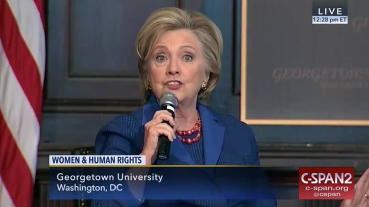 The former Secretary of State was speaking at a Human Rights event in the nation’s capital when she lashed out at Trump supporters for “going backwards,” saying GOP voters were “frightened” and “feeling insecure” about the future of the country.