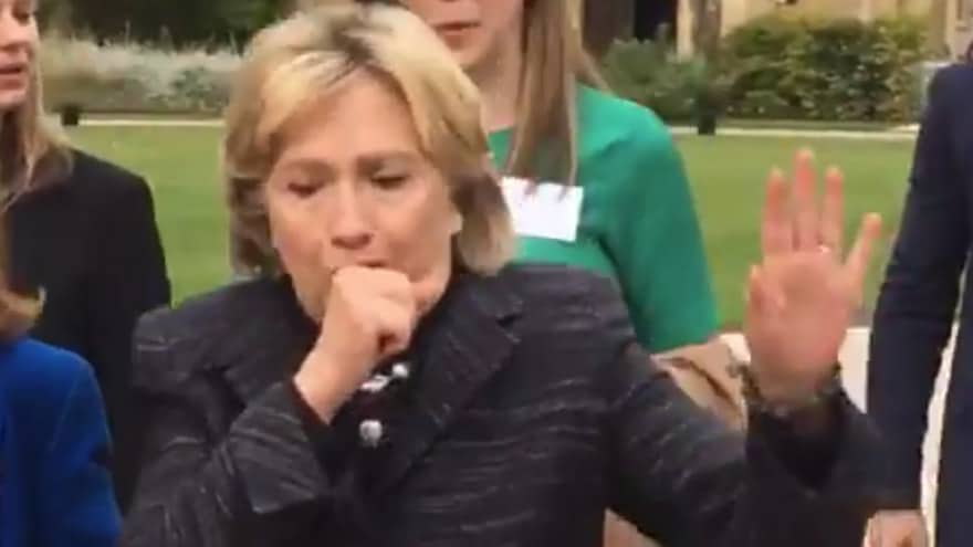Twice-failed presidential nominee Hillary Clinton brought her trademark “coughing fit” to the United Kingdom this week; scaring aides and supporters who scrambled to find her a bottle of water while visiting a local university.