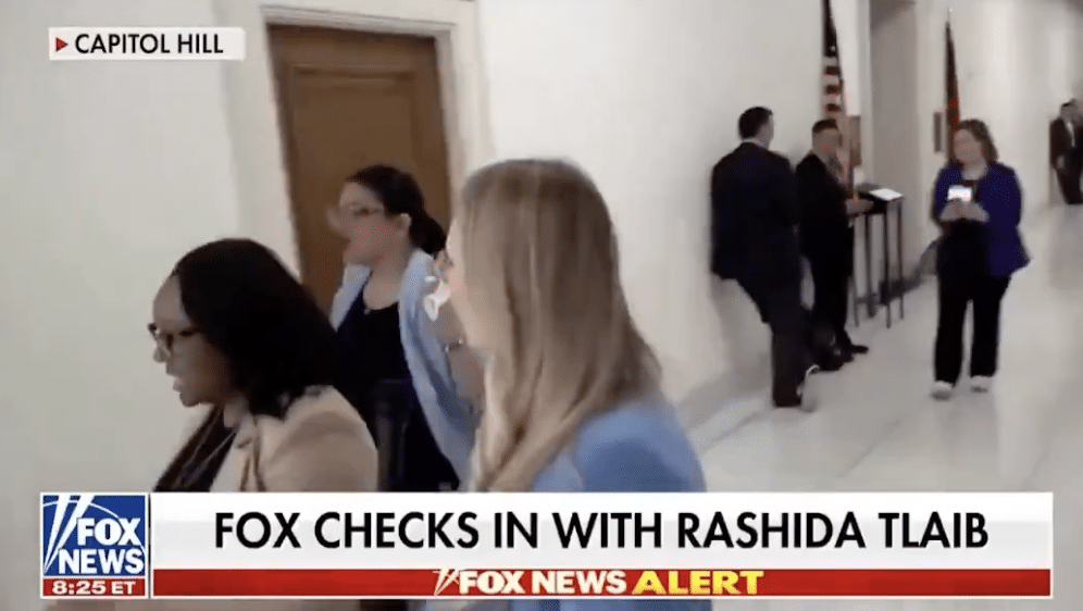 “I don’t talk to Fox News! I don’t talk to Fox News!” Tlaib yelled repeatedly as Vaughn tried to ask about the chant.