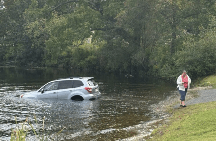 Fox News’ Bill Melugin shared the clip on X, saying, “An anti-ICE protester in Massachusetts forgot to put her car in park while yelling at agents making an arrest of an illegal alien in Upton, MA, and her vehicle went into a lake and sunk, an ICE source tells me.”