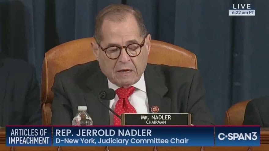 The House Democrats’ impeachment fantasy got even more absurd Thursday morning, when Rep. Jerrold Nadler introduced an amendment to the articles to replace the term ‘Donald J. Trump’ with ‘Donald John Trump.’
