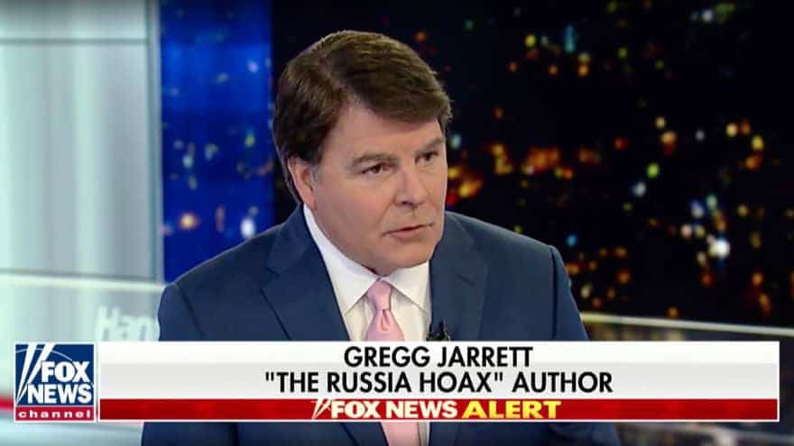 Fox News’ Gregg Jarrett stopped-by ‘Hannity’ Tuesday night to weigh-in on the Attorney General’s probe into potential FBI abuse in launching the Russia-Trump investigation; saying there was “never any credible evidence” to justify the two-year long witch hunt.