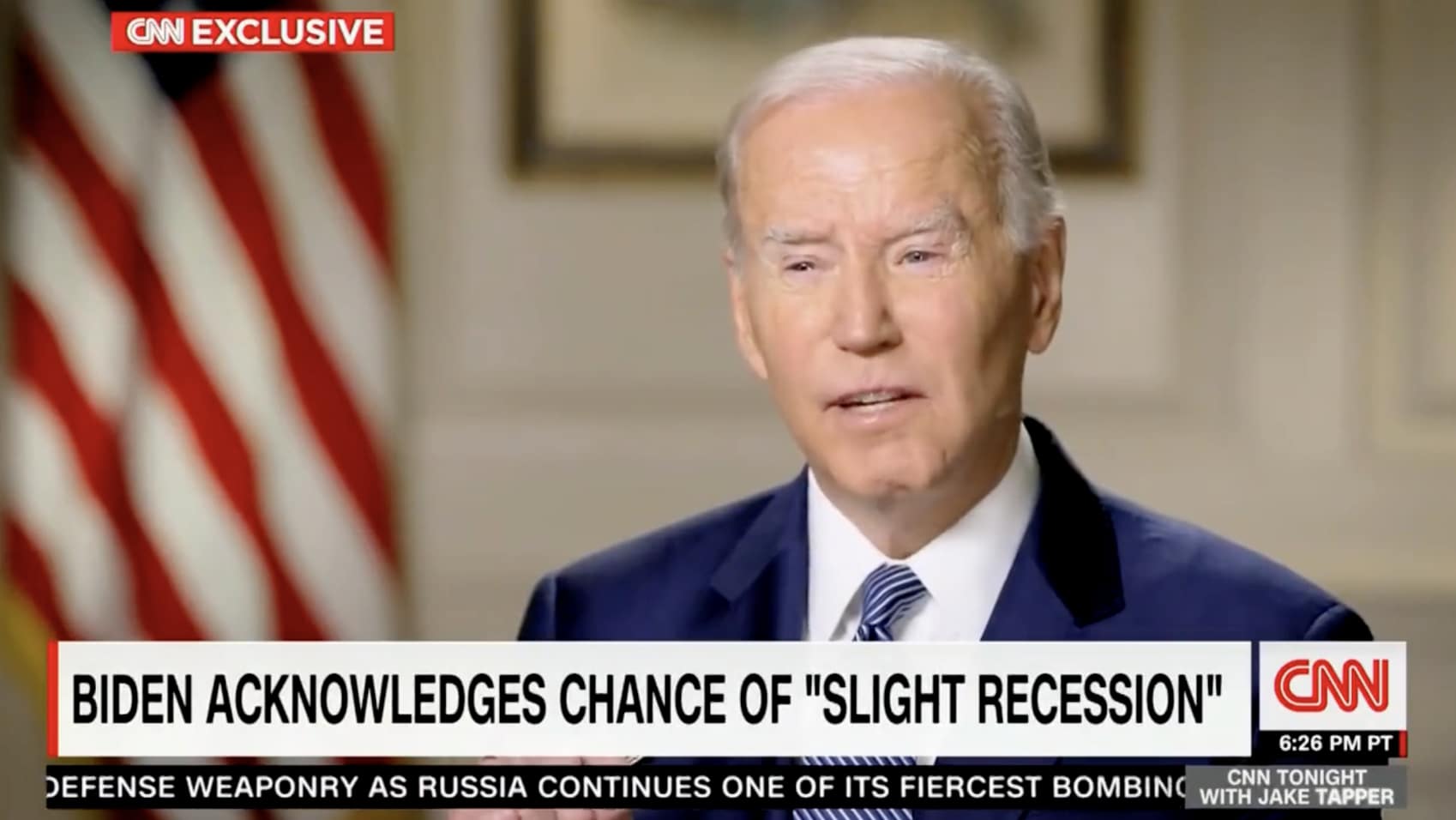 President Biden sat down with CNN’s Jake Tapper for a softball interview; the CNN anchor asked Biden about the possibility of a recession and Biden still blew the answer; “should the American people prepare for a recession?” Tapper asks