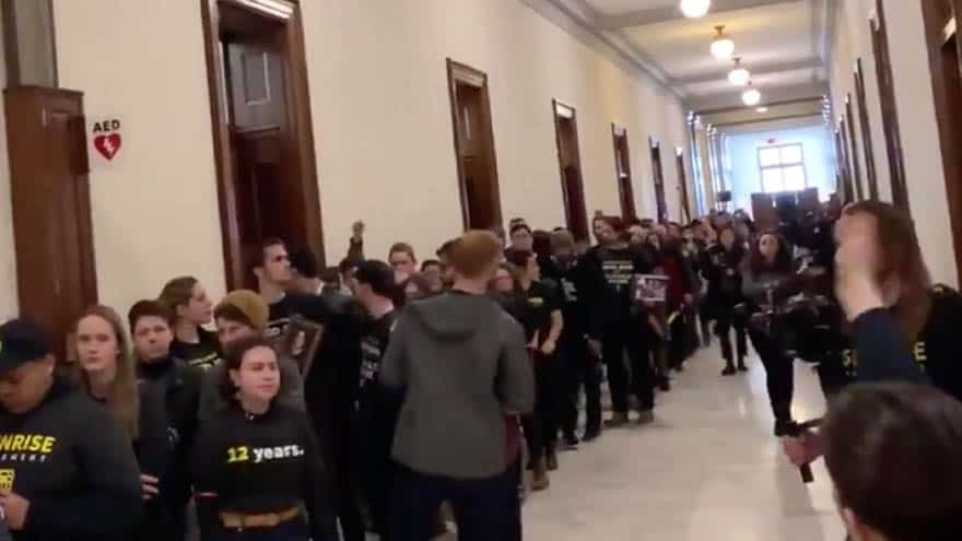 Hundreds of young activists with @sunrisemvmt are headed to Leader Mitch McConnell’s office to confront him over the Green New Deal pic.twitter.com/hImVsu2K5h