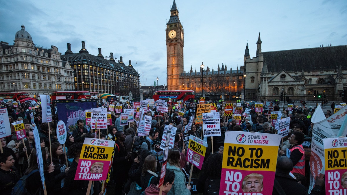 The Embassy of the United States in London warned Americans living and visiting the United Kingdom to “keep a low profile” Tuesday, saying “violent protests” may erupt during President Trump’s visit to the UK.