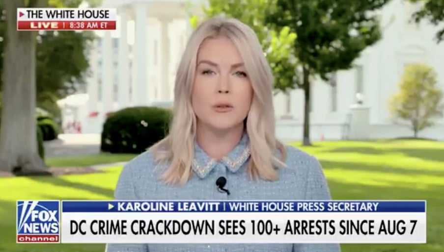 Trump White House press secretary Karoline Leavitt delivered the latest arrest numbers from Washington, D.C., where National Guard troops now patrol the streets and man checkpoints in the crime-scarred capital.
