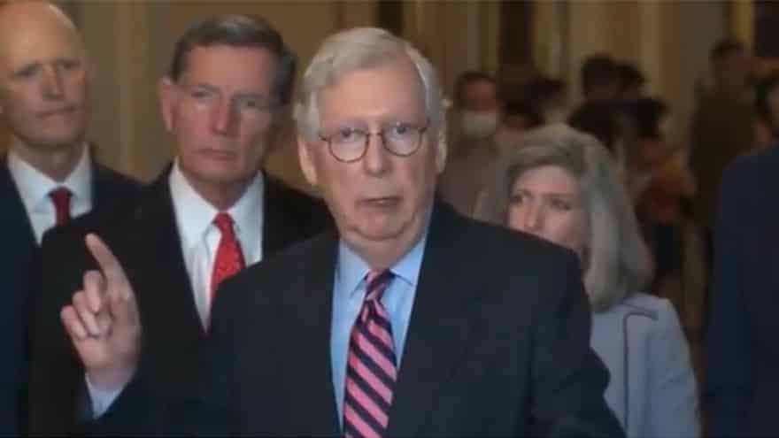 Senate Minority Leader Mitch McConnell threw more cold-water on the Democrats’ latest push to pass trillion in new spending Tuesday; telling reporters progressives simply “do not have a mandate to do this.”