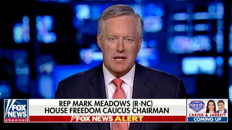 Rep. Mark Meadows stopped by ‘Hannity’ Monday night to weigh-in on the Deep State’s plot to “take this president down,” telling Fox viewers that “sitting ambassadors” were actively involved in the DOJ’s plot to remove Trump from office.