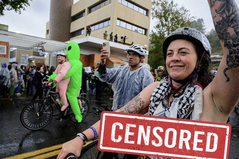 Cyclists wound through the streets toward the city’s ICE building, where authorities warned them to remain on sidewalks or risk arrest — a warning that seemingly went ignored in other parts of the city, as the cyclists staged a “die-in” on the Burnside Bridge.