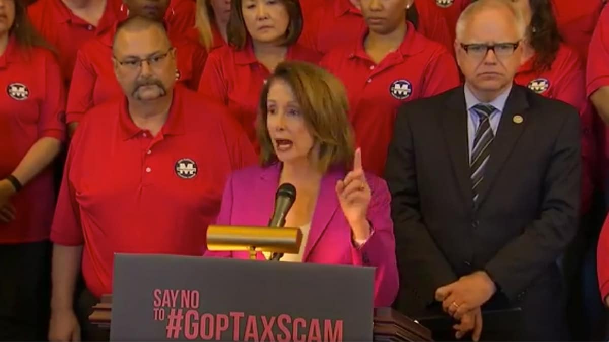 House Minority Leader Nancy Pelosi continued her all-out crusade against the GOP-sponsored tax legislation this week, slamming the cuts as a handout to “corporate America” and a “scam” for hard-working families.