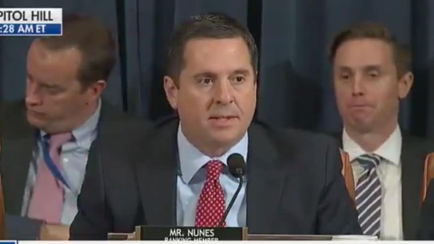 GOP Rep. Devin Nunes called-out the Democrats’ impeachment spectacle during televised hearings Wednesday morning; saying the entire inquiry is “an impeachment process in search of a crime.”