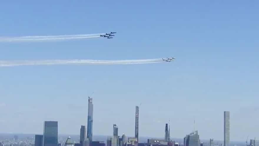 America’s famed Blue Angels and Thunderbird squadrons flew over New York City and the surrounding region Tuesday in a show of support of the country’s frontline workers and those impacted by the global Coronavirus pandemic.