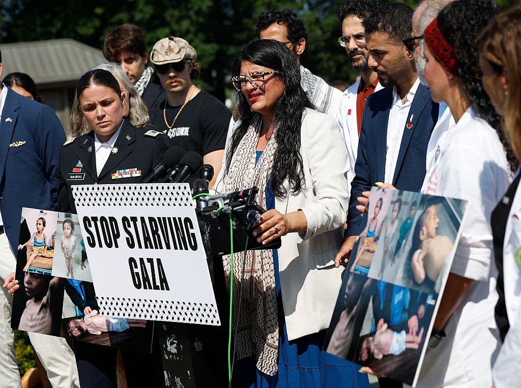Rep. Rashida Tlaib (D-Mich.) used her favorite “M-word” to whoops and applause, telling the crowd, “I wanna say to every genocide enabler, look at this room, motherf—ers, we ain’t going anywhere!”