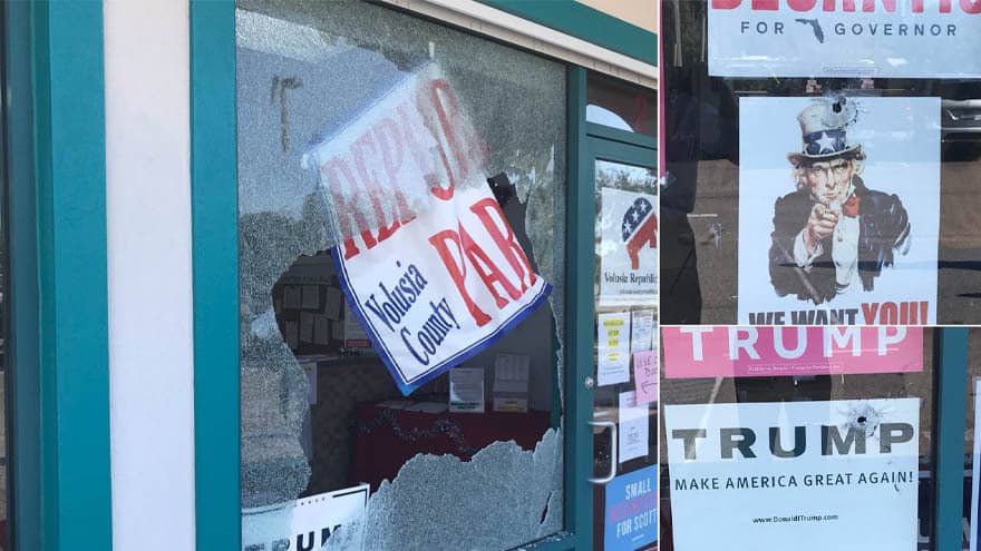 At least four bullets were fired into the Republican Party offices in Daytona, Florida Monday; breaking the building’s windows and destroying property while injuring no one.