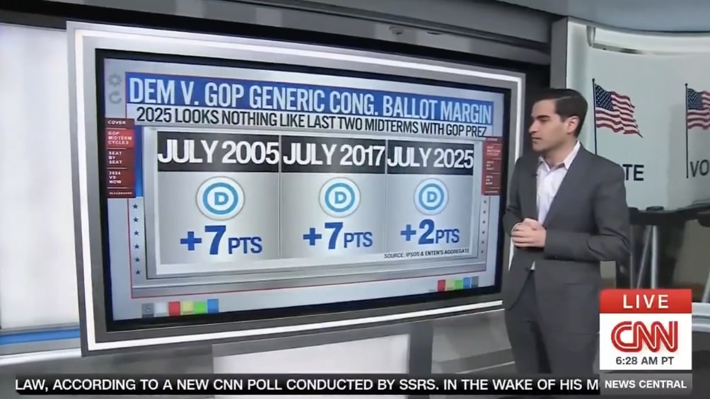 CNN’s Harry Enten shared polling on Wednesday that suggests Republicans have “more net pickup chances” in the 2026 midterm elections as the Democrats continue to spiral.