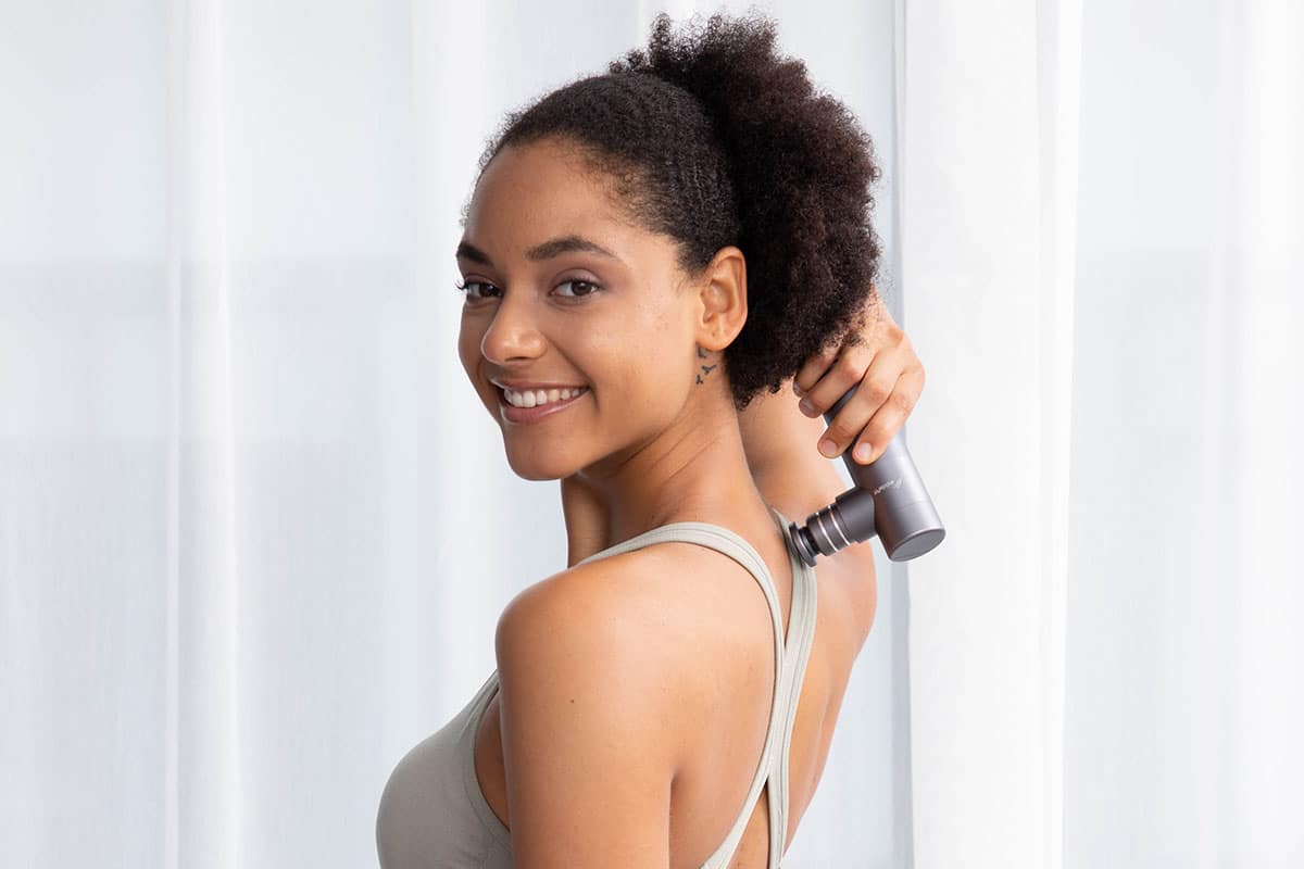 The other nice thing about this massage gun is how quiet it is. You could quite easily use it during a video call without anyone knowing — a good way to relieve the Zoom tension many of us have been experiencing over the past several months!