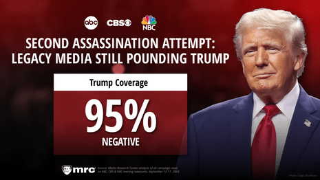 According to a Media Research Center report, major news outlets ABC, CBS, and NBC have given former President Donald Trump 95% negative press since the second attempt on his life in West Palm Beach.