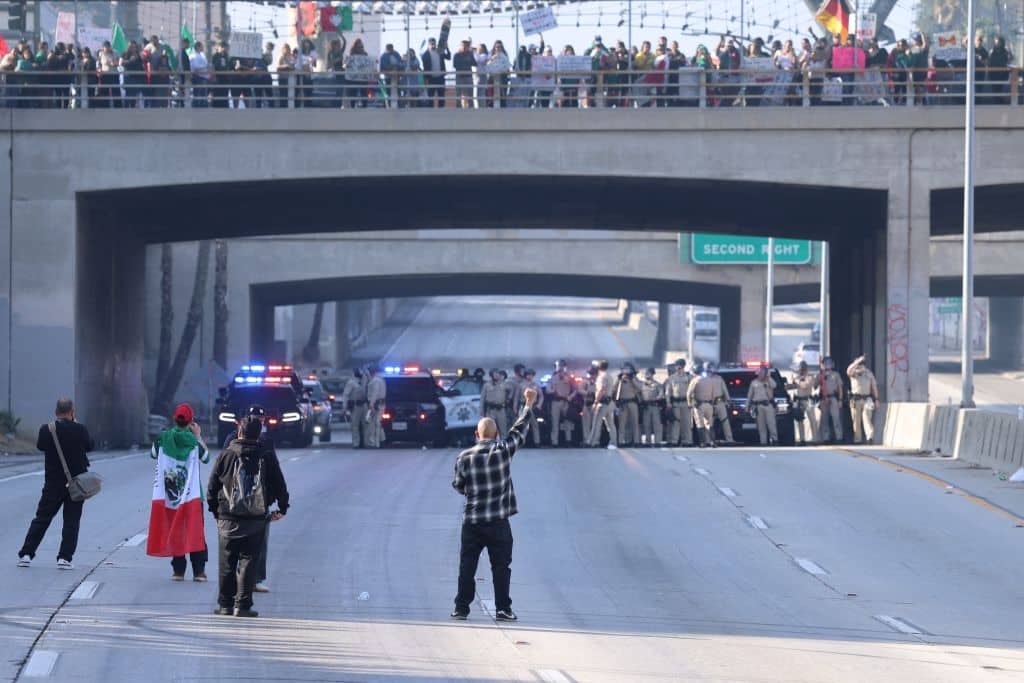 The L.A. protest continued into the evening until police in riot gear dispersed the crowd around 7:00 p.m. The 101 Freeway was cleared and reopened by 8:00 p.m. Authorities reported no arrests.