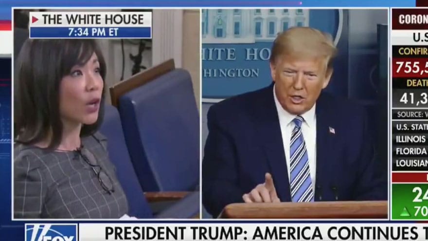 “I was very early… Do you know how many cases of the virus were in the United States when I issued the ban? Do you know the number? How many cases? How many cases were here when I issued the ban? You have to do your research,” he added. “Are you ready? How many cases were in the United States? How many people died? Keep your voice down.”