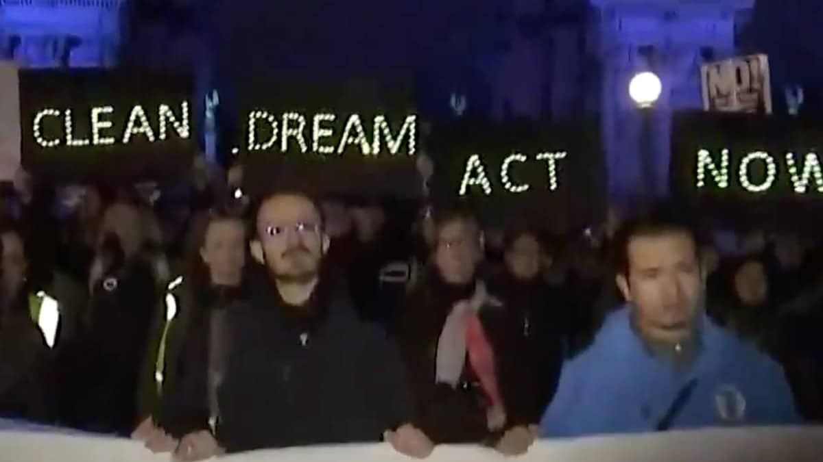 Demonstrators gathered just beneath the leading Democrat’s bedroom window, chanting “You let them dream, we let you sleep” and “Clean DREAM Act Now!”
