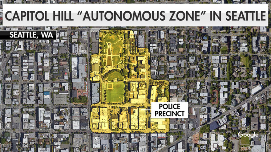 Protesters calling to defund the police and make sweeping reforms to law enforcement tactics have declared a six-block region — spanning 13th Avenue past 11th Avenue, near Cal Anderson Park, and from East Olive Street to East Pike Street — the “Capitol Hill Autonomous Zone” (CHAZ).