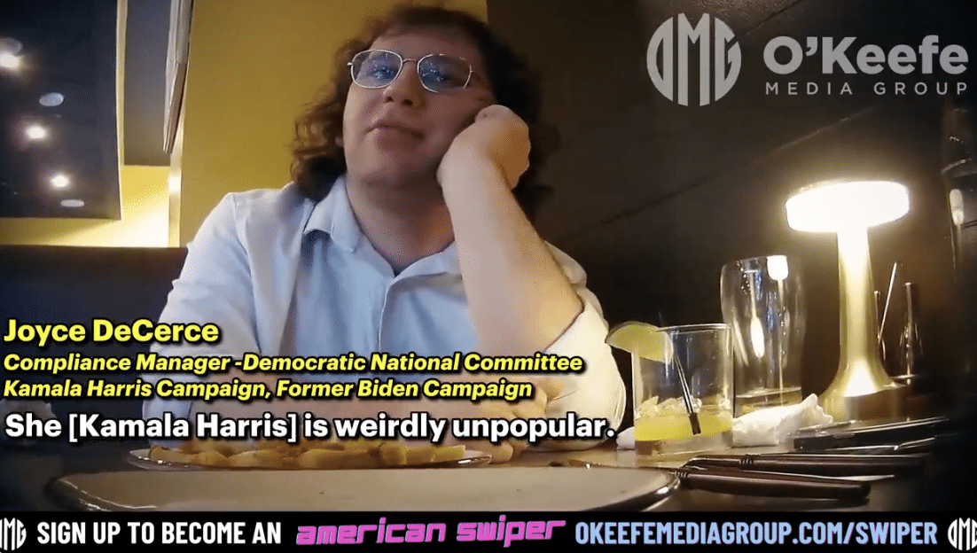 OMG’s James O’Keefe has dropped his latest hidden camera sting in which he exposes DNC Manager Joyce DeCerce badmouthing Kamala Harris; “She’s weirdly unpopular,” DeCerce says of Kamala.