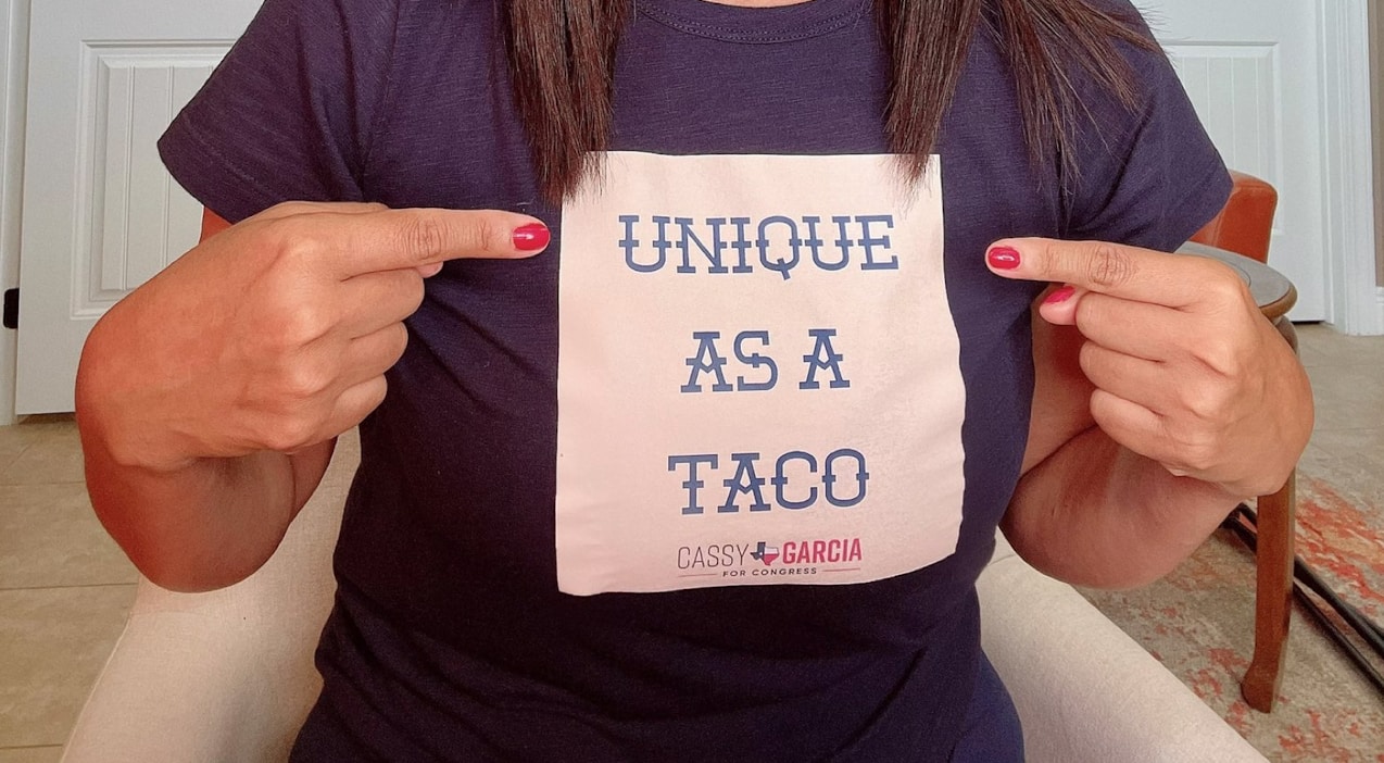 Cassy Garcia, a Hispanic woman running for Texas’ 28th district, shared a picture on Twitter of her new campaign shirt inspired by FLOTUS Dr. Jill Biden’s now-infamous taco gaffe during the Latinx Luncheon on Monday.