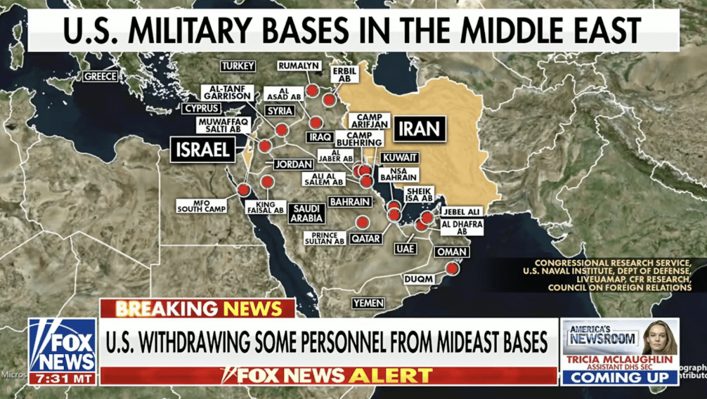 🚨 BREAKING: The United States is withdrawing some personnel from MULTIPLE bases in the Middle East as tensions flare with Iran
