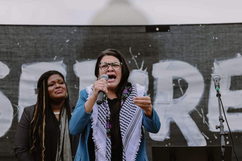 “It is also important to create a voting bloc, something that is a bullhorn to say ‘enough is enough, we don’t want a country that supports wars and bombs and destruction. We want to support life, we want to stand up for every single life,’” Ms. Tlaib said in a video posted to social media.