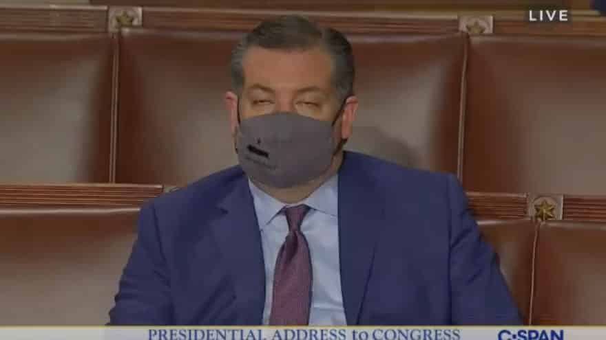 Ted Cruz reacted Thursday after cameras caught the Senator slowly dozing off during Joe Biden’s subdued, hour-long address at the US Capitol; saying “Kamala and Nancy agree.”