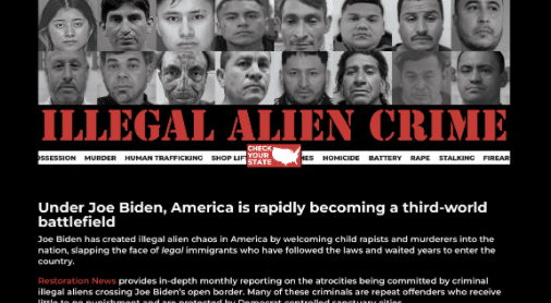 “Joe Biden has created illegal alien chaos in America by welcoming child rapists and murderers into the nation, slapping the face of legal immigrants who have followed the laws and waited years to enter the country,” the site continues.