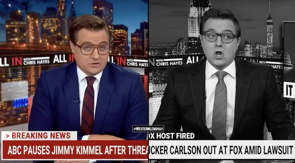 The left’s hypocrisy over Jimmy Kimmel’s firing was on full display on Thursday, as an old clip of MSNBC’s Chris Hayes went viral for previous comments on Tucker Carlson.