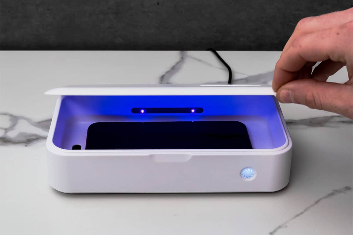 Known as “germicidal ultraviolet,” UV-C light is proven to damage the DNA of viruses and bacteria. A few seconds of exposure is fatal for these germs but completely harmless for humans. CleanTray is essentially a UV-C light chamber for your phone. You simply place your device inside the case, press the power button, and wait five minutes. In that time, the four UV-C LEDs blast away germs on the surface of your phone. The process is 99.99% effective and twice as fast as most UV-C sterilizers.